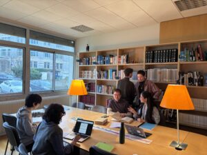Stage de rédaction discontinu de Sarah Calvente, étudiante de Licence (L3) en Lettres modernes de l’université de Lorraine, au sein de l’équipe française du DÉRom (ATILF, Nancy). – Photo : assise, en compagnie de Hugo Carbonnelle (jeune docteur au laboratoire STIH) et de Beatrice Maria Vispi (doctorante à l’ATILF).