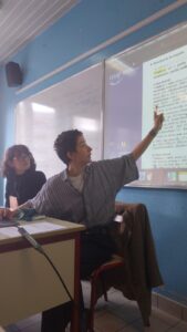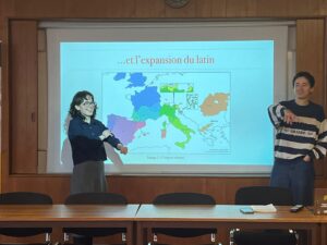 Sarah Calvente et Beatrice Maria Vispi présentent des cours-conférences sur le DÉRom devant plusieurs publics (membres de l’ATILF, étudiants de l’université de Lorraine, professeurs des écoles et du secondaire en stage d’immersion professionnelle, lycéen stagiaire).