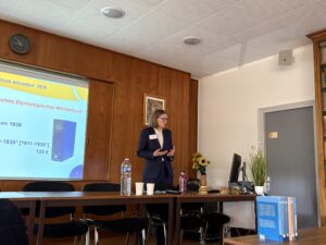 Éva Buchi présente une conférence intitulée « Lexicography as a means of expression of etymology : the Dictionnaire Étymologique Roman (DÉRom) » lors du EMLex Welcome Day à l’université de Lorraine.